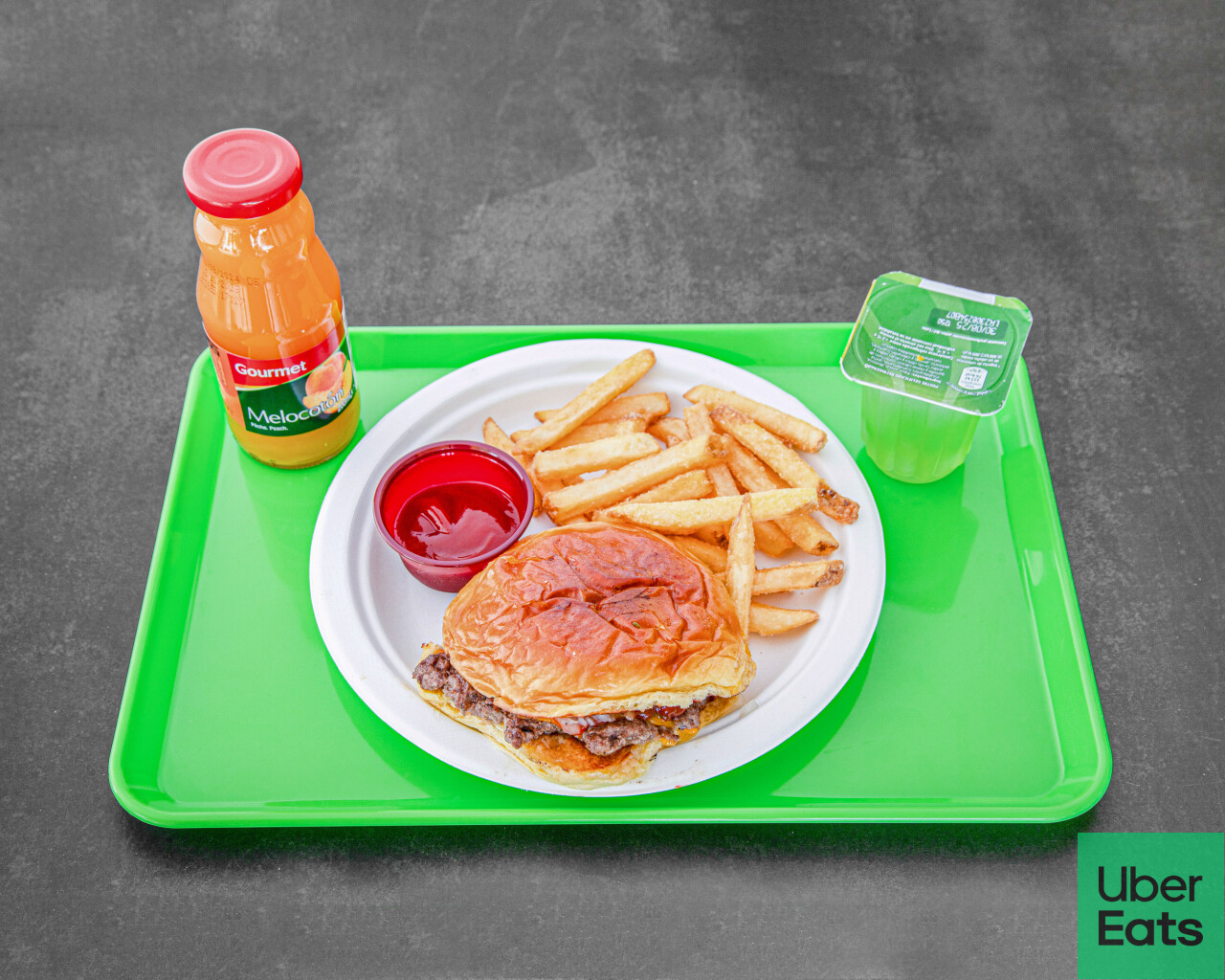 El menú perfecto para los más pequeños. Incluye a elegir entre 5 nuggets de pollo crujientes o una cheese burger con carne de vacuno, queso cheddar, kétchup, pepinillos, cebolla y mostaza. Se acompaña de patatas fritas, una bebida a elegir entre agua o zumo, y un postre sorpresa para cerrar con una sonrisa.